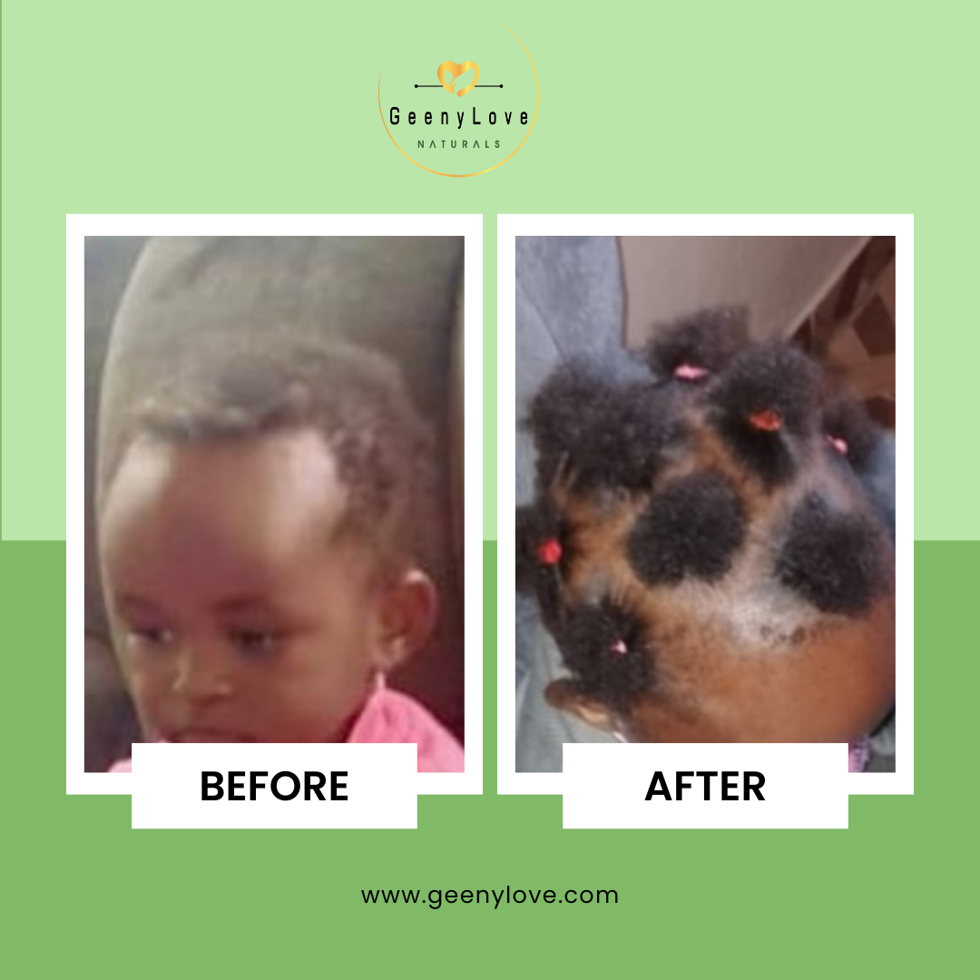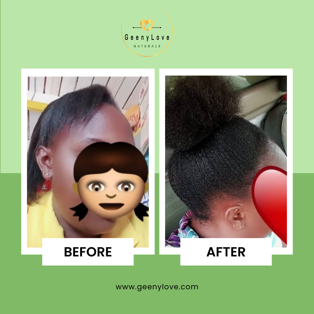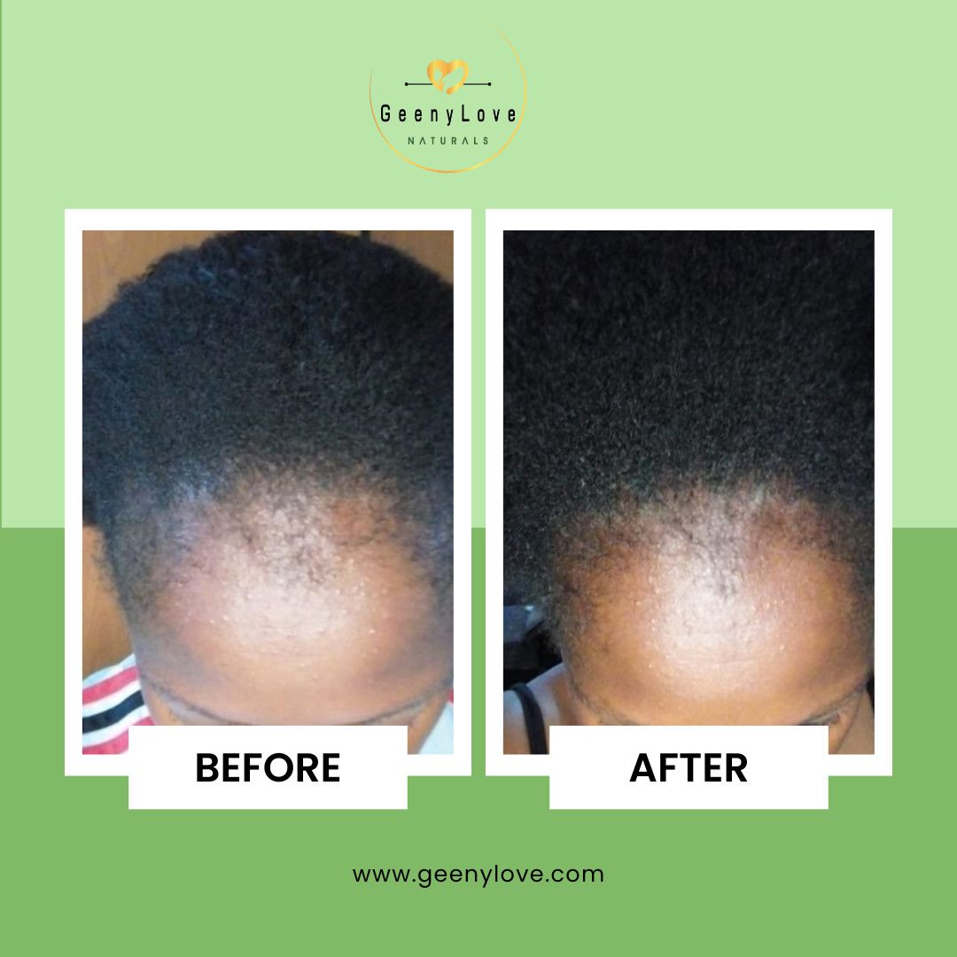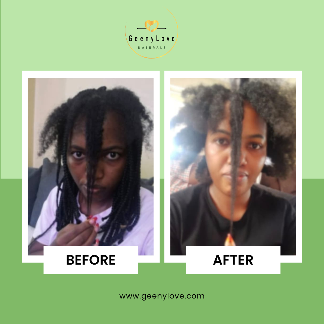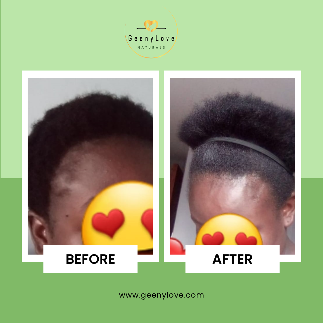 After months of testing and patience, her hairline grew back, her strands strengthened, and her confidence returned. That transformation inspired the creation of Geeny Love, a brand born from real results, natural care, and self-love.